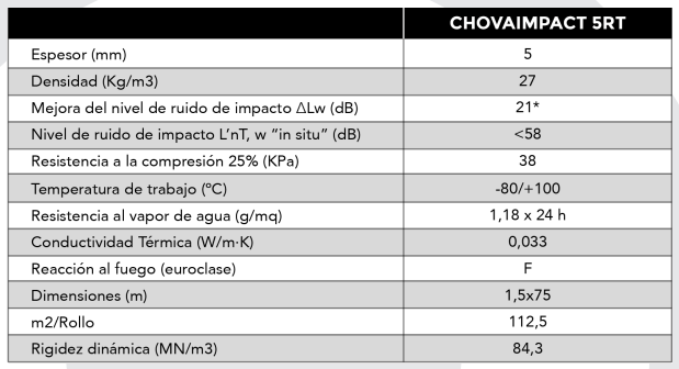 Posee elevada elasticidad y resistencia a la comprensión, recomendada especialmente para aislamiento acústico a ruido de impacto en edificación (viviendas, hoteles, escuelas, oficinas…). Desarrollada para aplicaciones bajo solera de mortero.