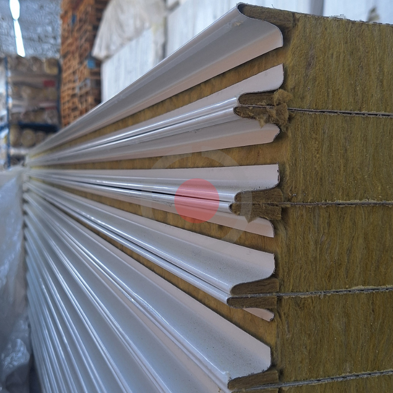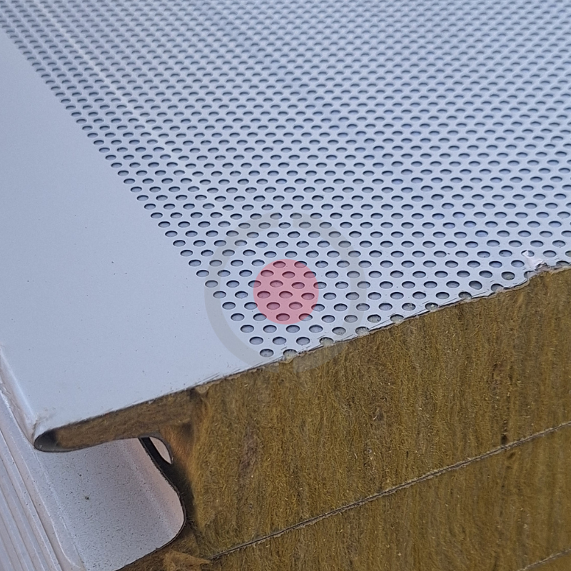 Está construido con dos capas de acero prepintado que encierran un núcleo de fibras minerales de lana de roca basáltica. Estas fibras están dispuestas de manera perpendicular para garantizar una máxima resistencia mecánica.